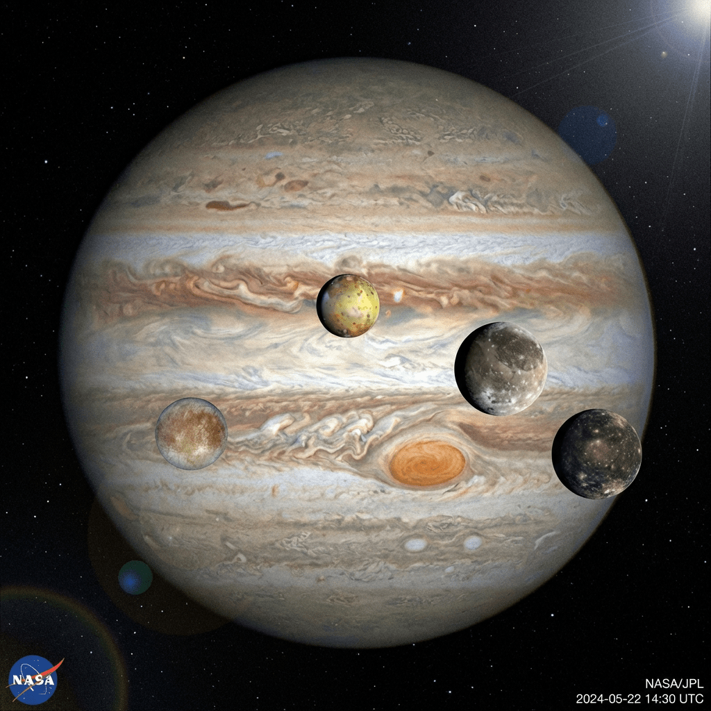 - Jupiter has many moons (about 95 known).
